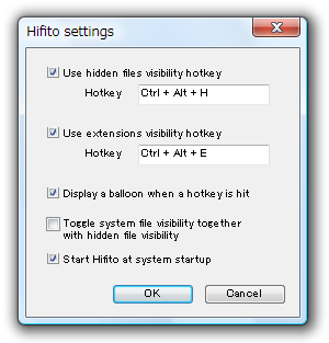 Software that allows you to show/hide hidden folders and file extensions using hotkeys or a tray icon