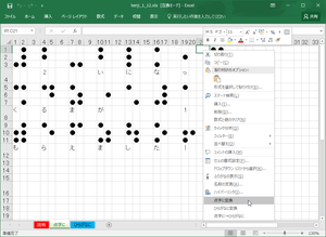 This is a braille conversion tool that uses an Excel macro and supports mutual conversion between hiragana and braille. When you start this software, three items will be displayed in the right-click menu: "Convert to braille," "Convert to hiragana," and "Braille to hiragana." Conversion can be performed from there. This is a useful tool for introducing braille learning.