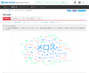 This is a text mining tool that analyzes surveys, word-of-mouth, etc., and extracts and analyzes frequently occurring phrases and characteristic words.