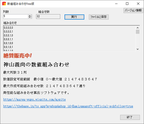 Software that outputs up to 32 combinations of 0 and 1 in CSV format