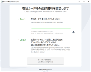 This software reads residence cards and special permanent resident certificates with an IC card reader/writer and checks whether the cards are valid.