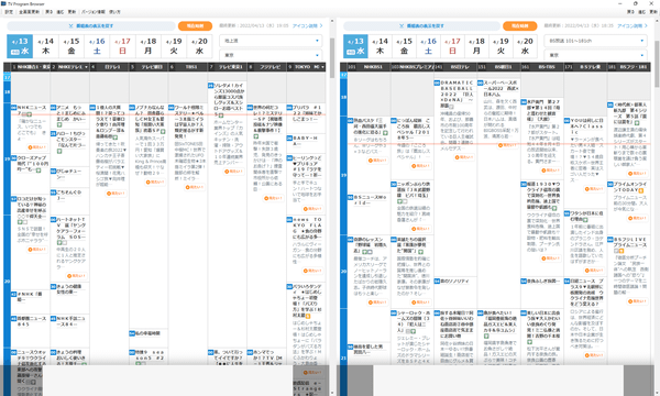 This is a dedicated browser for viewing TV programs that displays terrestrial and BS broadcast program guides simultaneously without horizontal scrolling.