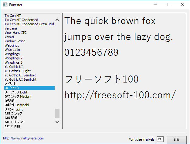 - Fontster - 0 - (-) - A simple, fast font viewer that displays a list of installed fonts. - This font viewer displays a list of installed fonts and allows you to easily check what fonts they are. It is lightweight and fast, and you can enter any text to check it, and change the font size to any size you like.