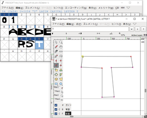 can create individual characters using freehand or various tools, and output them as fonts in Postscript, Open Type, True Type, SVG font, Web Open Font, and more.