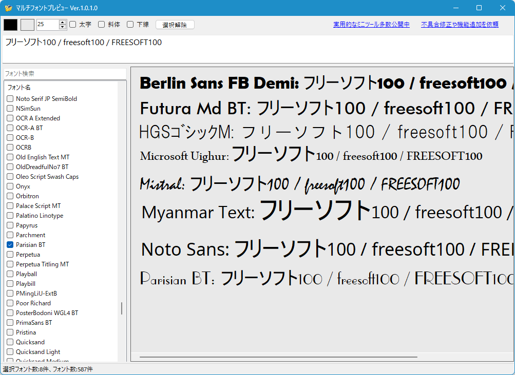 - Multi-font preview - 0 - (-) - Software that can display and compare input strings in multiple fonts simultaneously - This software allows you to preview multiple fonts at once, allowing you to see how the entered text will appear.